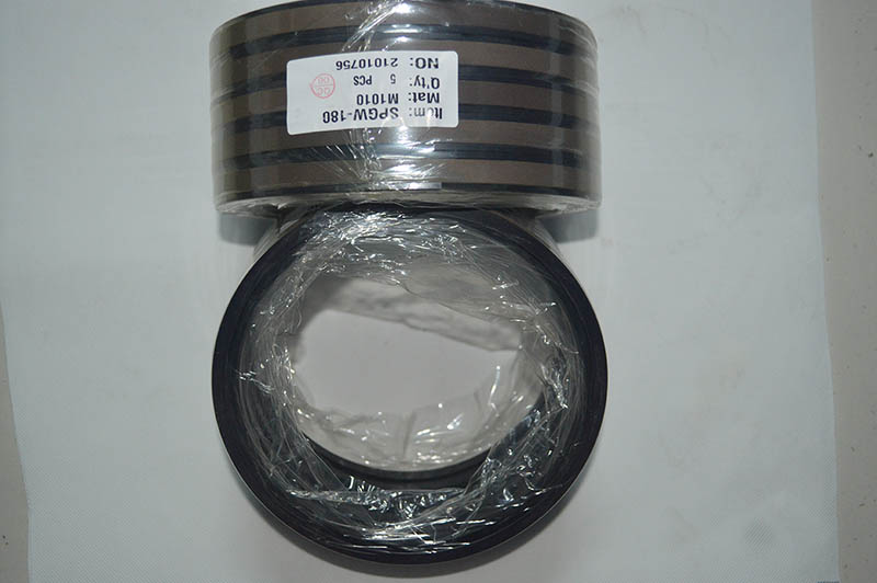SPGW組合密封圈包括一個彈性齒狀密封圈、兩個擋圈和兩個耐磨環(huán)。在中間有一個真正起密封作用的密封元件;而在每一邊各放置一個擋圈和一個耐磨環(huán)。擋圈防止密封圈被擠出到間隙中去;中間的密封圈是齒狀密封圈,在靜止和運動時都能起良好密封作用。耐磨環(huán)的作用是在缸體內(nèi)對活塞導(dǎo)向,并且承受徑向力。